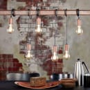 Townshend pendellampa från Eglo har en rå och industriell design som fulländas av kombinationen av de svarta kablarna och de rostfärgade uttagen och takfästena. Trots lampans råa utseende utstrålar den brunaktiga rostfärgen en speciell värme och skapar en bra kontrast till vita väggar.