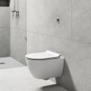 Den blanka vita färgen är en särskilt exklusiv detalj som tillsammans med den dolda monteringen gör toaletten till en vacker blickpunkt i det moderna badrummet.