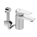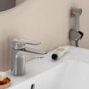 Tvättställsblandarens grepp har tydlig färgmarkering och Soft Move funktion som gör att det glider lätt när du justerar vattenmängd eller temperatur. Atlantic tvättställsblandaren har justerbar maxtemperatur för ökat skållningsskydd.