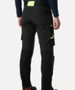 Byxorna är tillverkade i lätt och slitstarkt material med 4-vägs stretch, vilket ger dig maximal flexibilitet. Ergonomiskt formade knän, förstärkningar och smarta detaljer som knäskyddsfickor och justerbar benlängd gör att du kan arbeta obehindrat, även när tempot är högt. Praktiska fickor, ID-hållare och reflexdetaljer gör att du har allt du behöver nära till hands – och syns när det behövs.