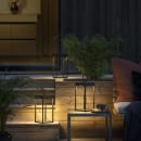 Bordslampa från Ravello-serien av svenska Konstsmide i modern design. Den IP54-klassade lampan är tillverkad av aluminium. Den är uppladdningsbar och har en inbyggd LED och mäter 15x30x15 cm.