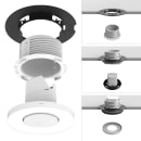 Den platta och diskreta designen passar elegant in i taket. För en mörkare look kan täckringen bytas ut mot svart.