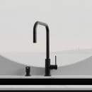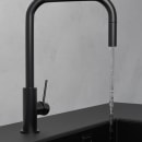 Den tidlösa och vackra köksblandaren Accent Square från Scandtap är tillverkad av borstat rostfritt stål, som sedan är belagt med en slitstark PVD-yta i borstad svart.