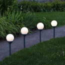 De fyra trädgårdslamporna från Star Trading har en klassisk globdesign som garanterat kommer att skapa en mysig atmosfär i trädgården, i sängar, på gräset eller framför huset i en blomkruka.