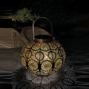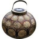 Lekker solcelle-lanterne med rund form med et lekkert brunt/gyllent design. Utstråler et veldig koselig LED-lys fra den innebygde LED-lyskilden. Lader om dagen i solen og slår seg på så snart det begynner å bli mørkt.